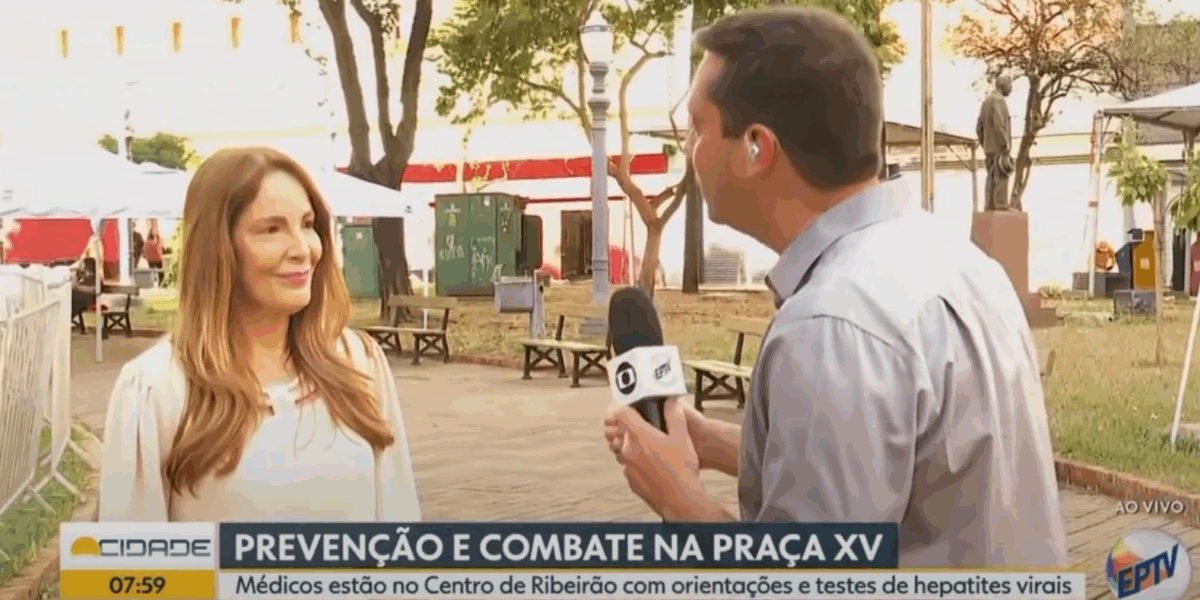 Neste dia 28 de julho, Dia Mundial de Luta Contra as Hepatites Virais, a hepatologista Rosamar Rezende foi entrevistada pelo Grupo Thathi de Comunicação, levando informações essenciais sobre prevenção, diagnóstico e tratamento dessas doenças silenciosas que afetam milhões de pessoas no Brasil e no mundo. Foi uma oportunidade valiosa para conscientizar a população de Ribeirão Preto e toda a região
